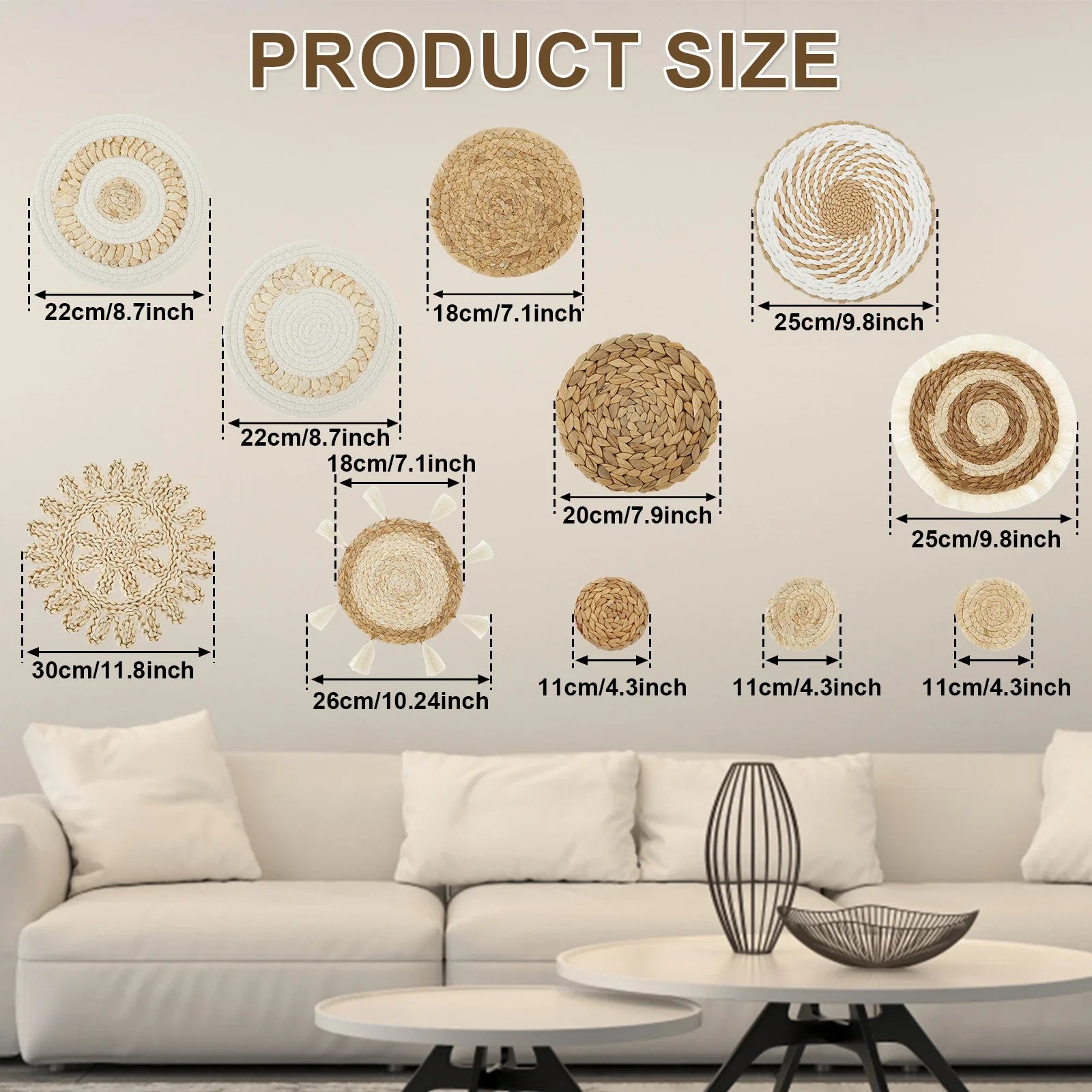 • Comprend 11 paniers tressés uniques pour des compositions murales variées.