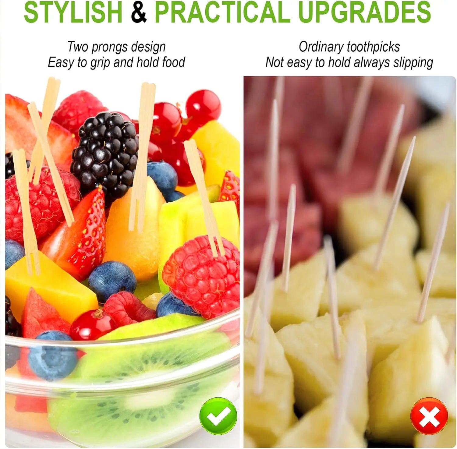 • Size: Ideal fork length to easily pick up small bites of food, fruits, or snacks.